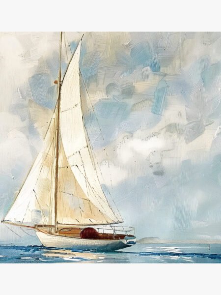 This pintura representa a sailboat sailed alone on the vast mar, its pale yellow and white sails fluttering in the eólico, contrastando with the gris nubes in the cielo. The whole picture gives personas a peaceful and profound sintiendo, as if it can hacer personas sienten the vastness and profundidad