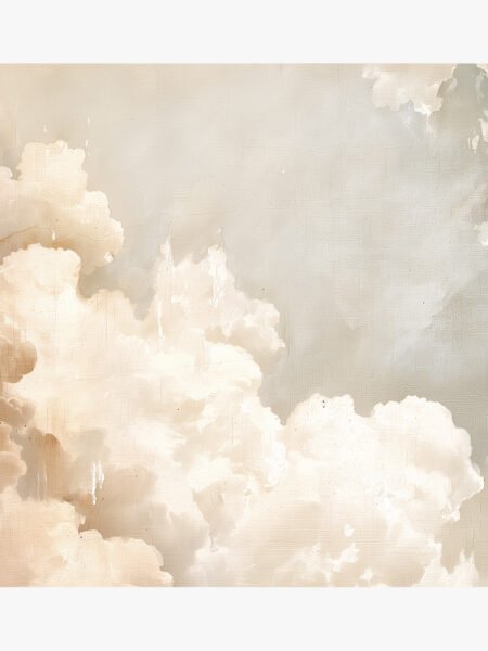 This petróleo pintura delicately portrays the harmonious coexistence of cielo and nubes. In suave tones, the nubes, fluffy gustar cotton candy, are scattered in various sizes across the lienzo, evoking infinitas imagination. Above the layers of nubes, faint lines resembling the trails izquierda by airplanes add a touch of dinámico