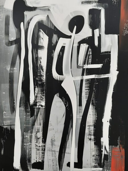 Usando black and white as the main color scheme, geometric shapes and curves intertwine as if engaged in a silent conversación. Every línea and forma seems to contar its poseer historia. The contraste and unidad within the composición crear a harmonious beauty, evoking pensamiento and resonance in the viewer.