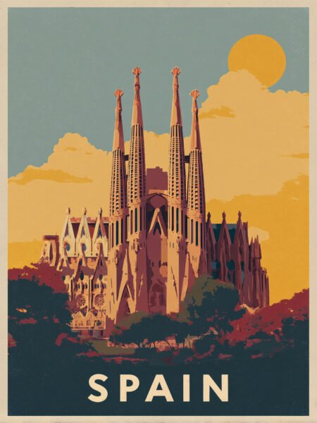 Att atardecer, the Sagrada Familia¡¯s spires stand alto, with stone textures and stained glass blending harmoniously. Crowds gather in the square, while the ciudad and distante hills bask in cálido luz, mostrando the awe-inspiring artistry and human calidez.