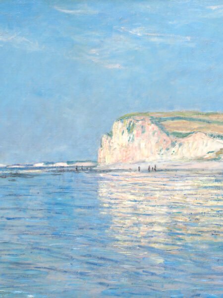 La pintura "Antibes" de Monet representa el paisaje de Antibes, una ciudad costera del sur de Francia. En la obra, el mar azul contrasta intensamente con las montañas nevadas a lo lejos, mostrando la belleza y la armonía de la naturaleza. Los colores frescos y las pinceladas delicadas transmiten una