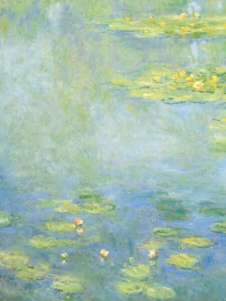 La obra "Nenúfares" de Monet representa un estanque tranquilo cubierto de delicados nenúfares. El agua cristalina refleja el azul del cielo, creando una sensación de paz y serenidad. A través de tonos suaves y pinceladas delicadas, Monet capturó la belleza y la tranquilidad de la naturaleza.