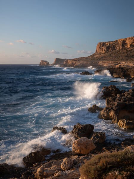 Cancióng of the Waves" captura the magnífico paisaje of Malta's costa. The azure mar clashes with the rocks, and the waves crash contra the reefs, jugando nature¡¯s melody. The fading luz solar casts a dorado tono over the mar, weaving together the tranquilidad and poder of the costa. Through subtle