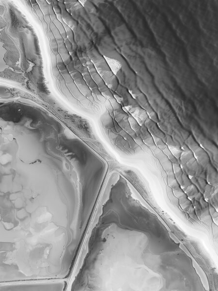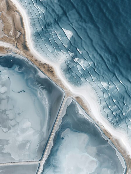 An aerial view reveals the natural textures of the costa. The black-and-white tones enhance the contraste, haciendo the layers of the playa and waves más pronounced. The curves of the costa and the textures of the agua crear an abstracto natural pintura, mostrando the único beauty of naturaleza. The piece