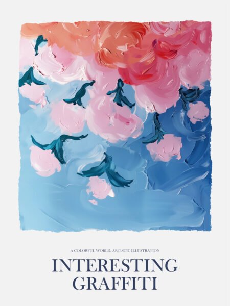 This abstracto petróleo pintura representa a mar of blossoms with suave hues and flowing brushstrokes. The intertwining pinks and blues crear a dreamy effect, as if the flowers are gently bailando in the aire. The green stems add profundidad and vitalidad to the composición. The overall image exudes a sentido