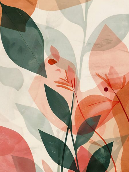 Inspired by otoño leaves, this pintura representa a dreamlike abstracto espacio. The leaves are vibrant in color and varied in forma, together creando a richly layered artístico tableau. Cálido tones crear a tranquil and mysterious atmosphere.