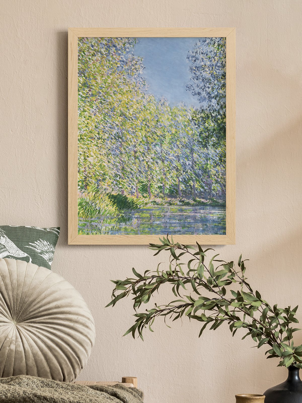 La obra de Monet “La curva del río Epte” representa el hermoso paisaje a orillas de este río. La luz del sol se filtra a través del exuberante follaje hasta la superficie del agua, y una suave brisa mece las copas de los árboles, creando una atmósfera tranquila y apacible. Los colores vibrantes y el juego de luces y sombras reflejan el amor de Monet por los paisajes naturales y su habilidad para capturar momentos fugaces.
