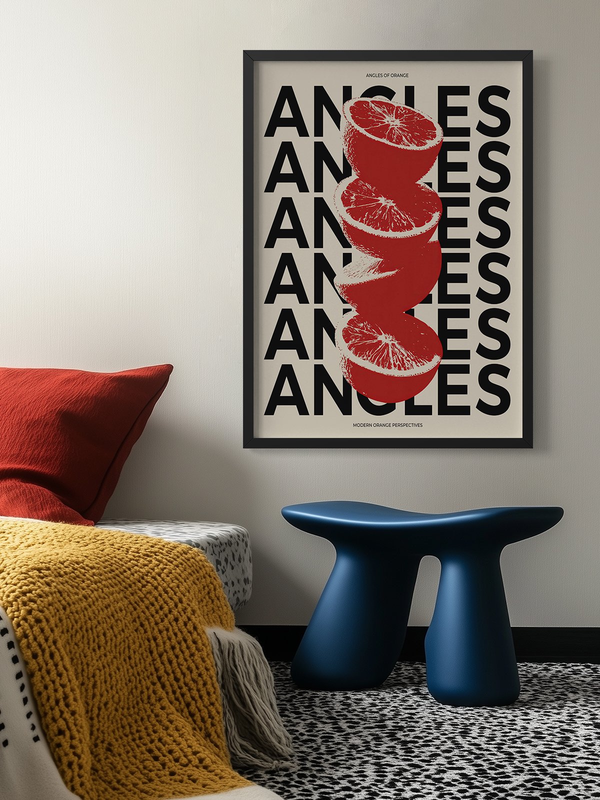 Stacked naranja slices deconstructed and layered challenge conventional forma. The vivo fruit pairs with bold typography to deliver a striking visual tensión. Repeating AnglesS” in the fondo reinforces the theme¡ªcelebrating diverse perspectives and moderno diseño possibilities.