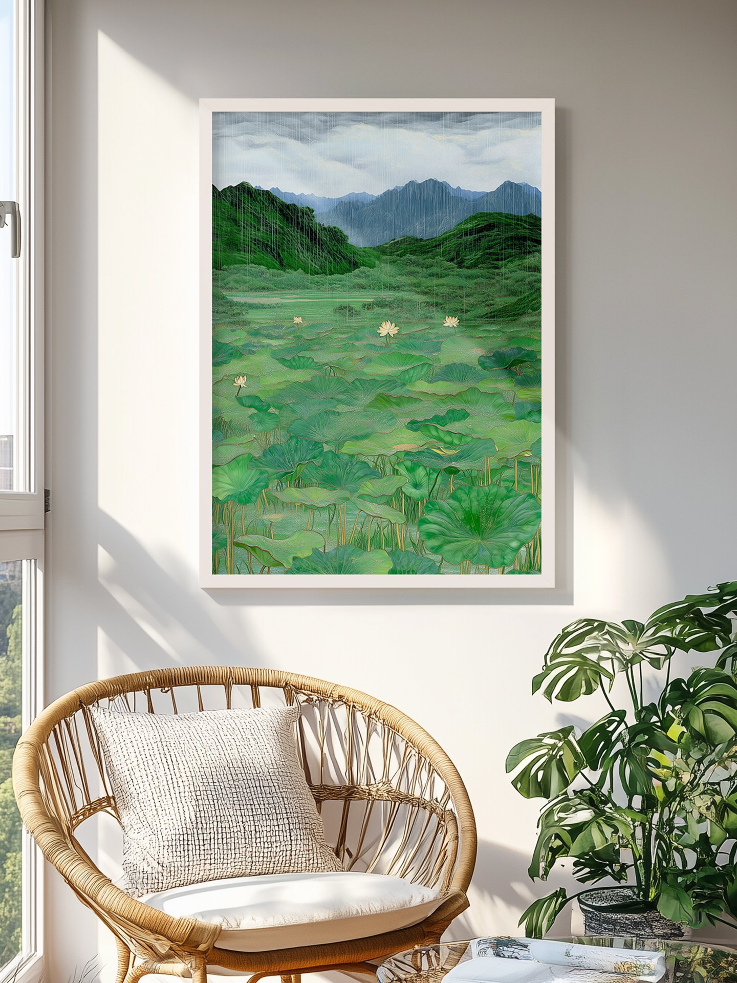 Estanque de Lotos bajo la Lluvia Suave