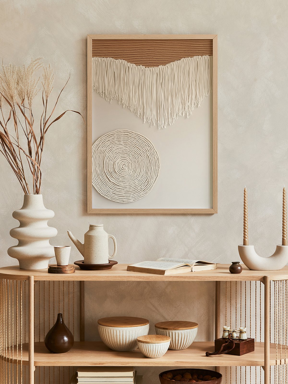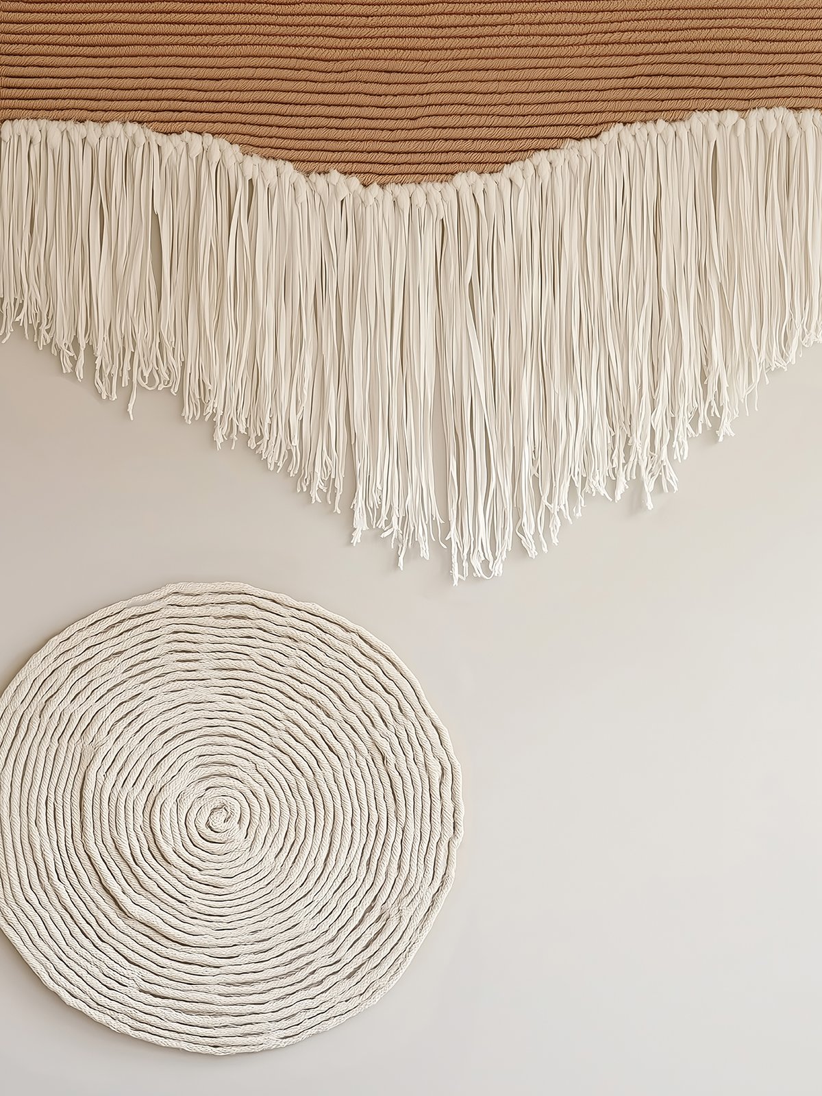 Ivory fringes cascade gustar dorado atardecer over a quiet paisaje, while the round coiled weave below echoes the gentle glow of a setting sol. Together, they compose a tranquil poema of textura and luz.