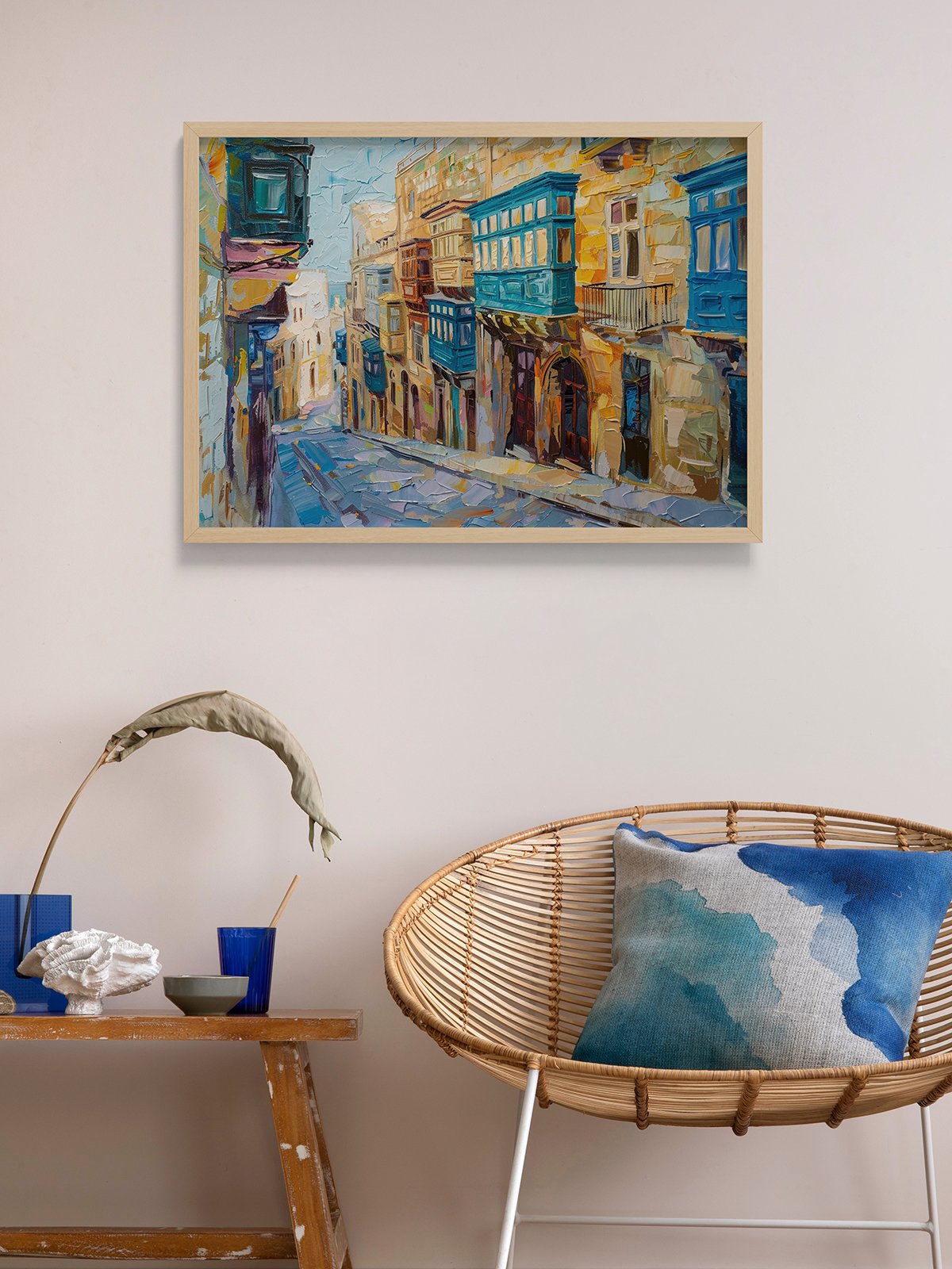 With vibrant colors and textured petróleo strokes, this pintura portrays the winding streets of Valletta. Dorado limestone walls gleam under the Mediterranean sol, adornadas with colorful balcones gustar scattered musical notes. The calle slopes downward, leading the eye toward the deep blue mar, evoking the timeless bond between the antiguo ciudad and the océano beyond.