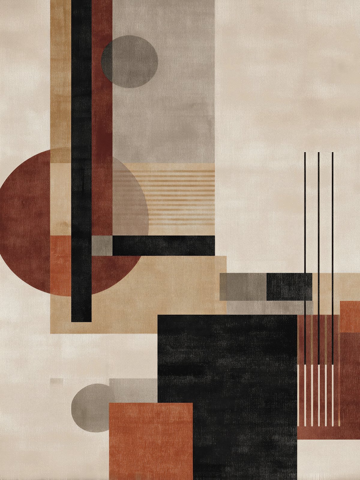 This artwork uses limpio lines and geometric shapes to forma a balanced composición. The interplay of brick rojo, beige, and black crea a calm yet structured estético. It evokes the ritmo of arquitectura and the abstracto idioma of cities, perfecto for moderno interiors buscando a refined, understated artístico atmosphere.