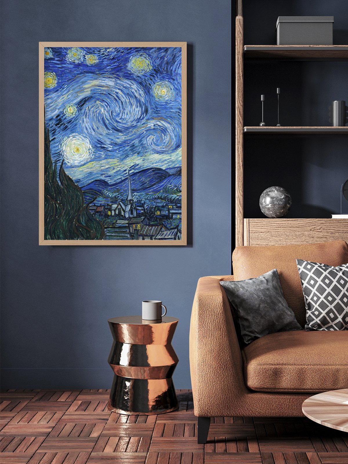La obra *La noche estrellada* de Van Gogh representa un cielo nocturno dinámico y vibrante, con nubes arremolinadas y estrellas centelleantes que resultan cautivadoras. El azul intenso del cielo nocturno contrasta fuertemente con el brillo de las estrellas, creando una sensación a la vez onírica e inquietante.