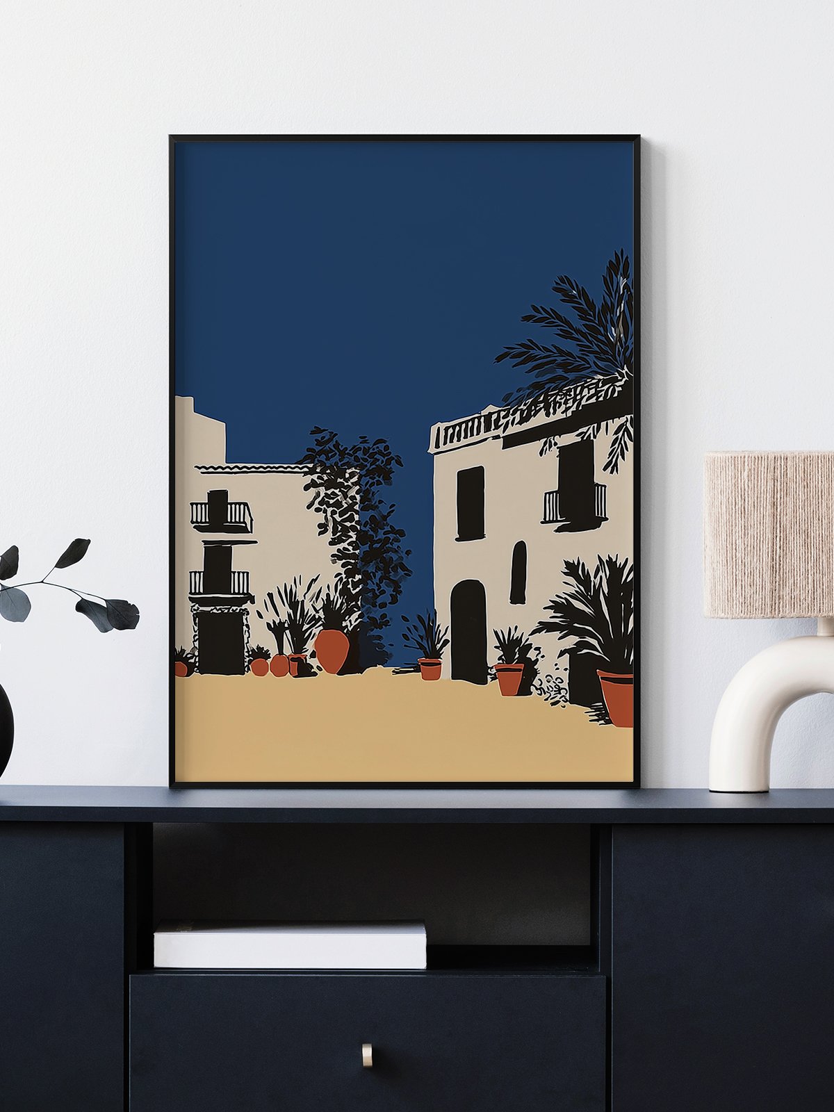 As atardecer falls, whitewashed edificios stand quietly beneath the deep blue Maltese cielo. Potted plants scatter the square, capturando the tranquilidad of a Mediterranean tarde. The minimalist strokes hablar softly of stillness and lento living¡ªa peaceful pause in tiempo.