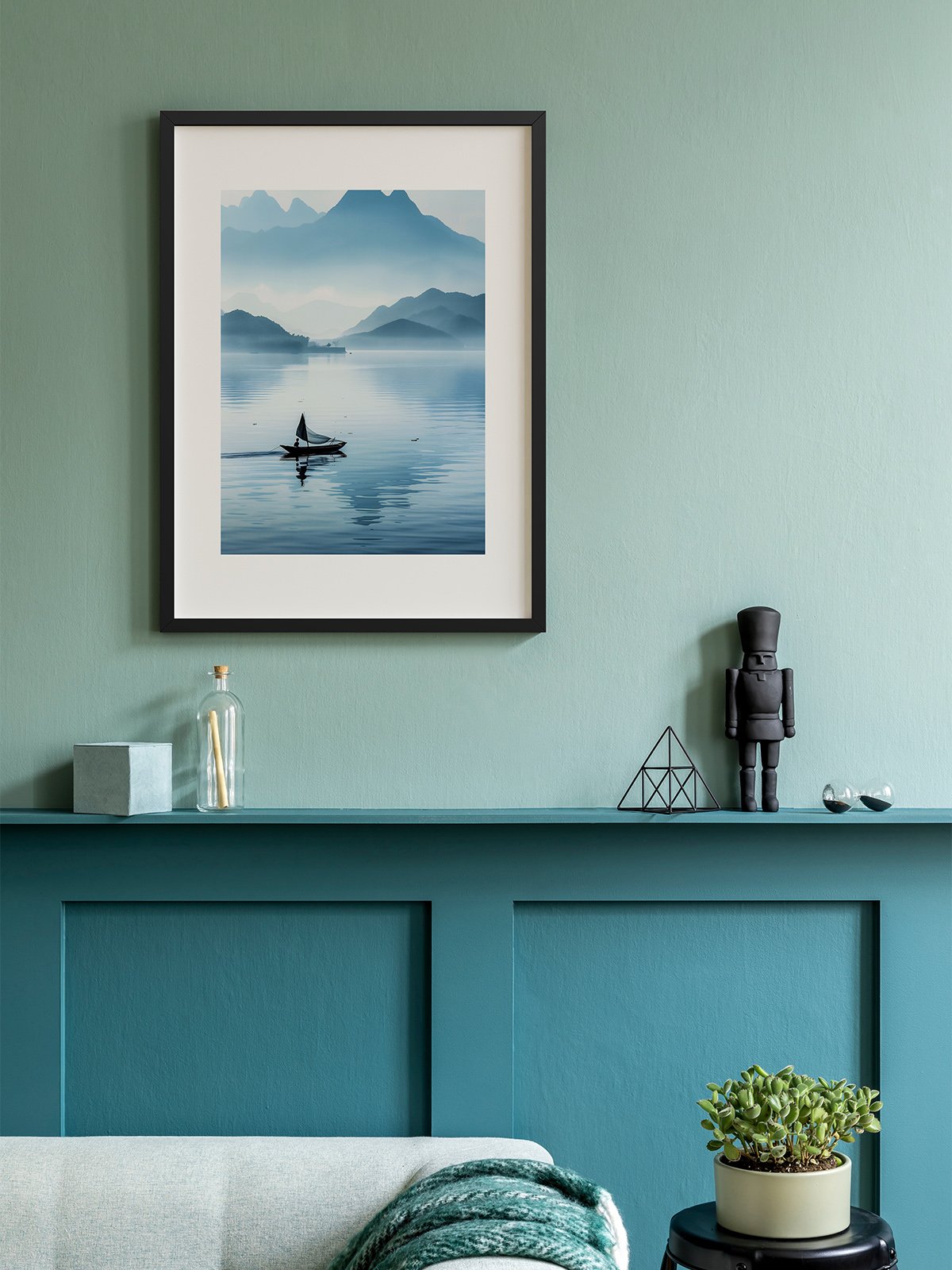 This photograph captura a serene escena of a fisherman rowing a pequeño barco on a calm lago. The distante mountains are shrouded in a luz mist, layered and hermoso gustar an ink pintura. The mañana luz solar filters through the fog, casting a suave glow on the tranquil lago, with the boat’s reflection clearly visible in the agua. The entire image exudes paz and armonía, transporting the viewer into a dreamlike fairyland, evoking a sentido of the tranquilidad and beauty of naturaleza.
