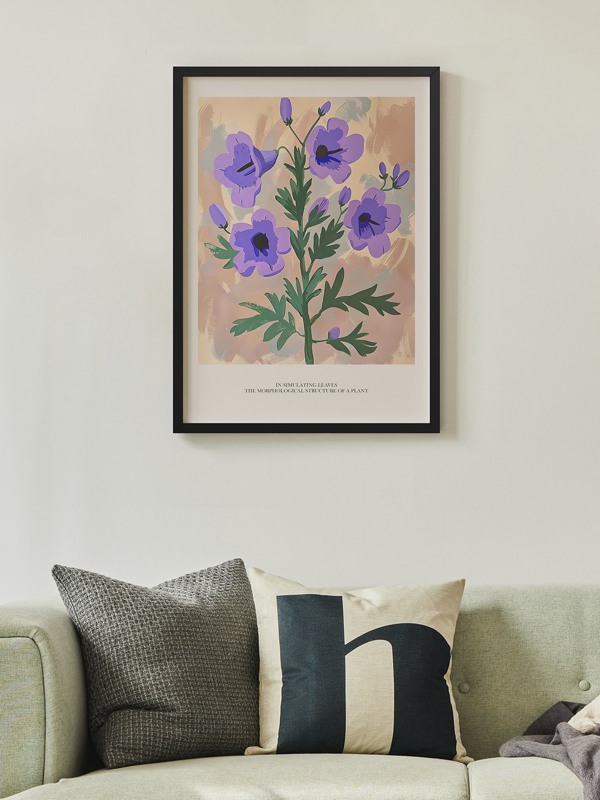 This image representa a plant adornadas with vibrant purple flowers contra a suave pink and beige fondo, highlighting the vivo colors of the blossoms. The simple and elegante composición evokes a fresh and natural sintiendo, transmitiendo the vitalidad and beauty of plant crecimiento.