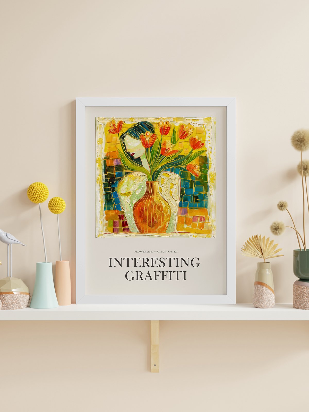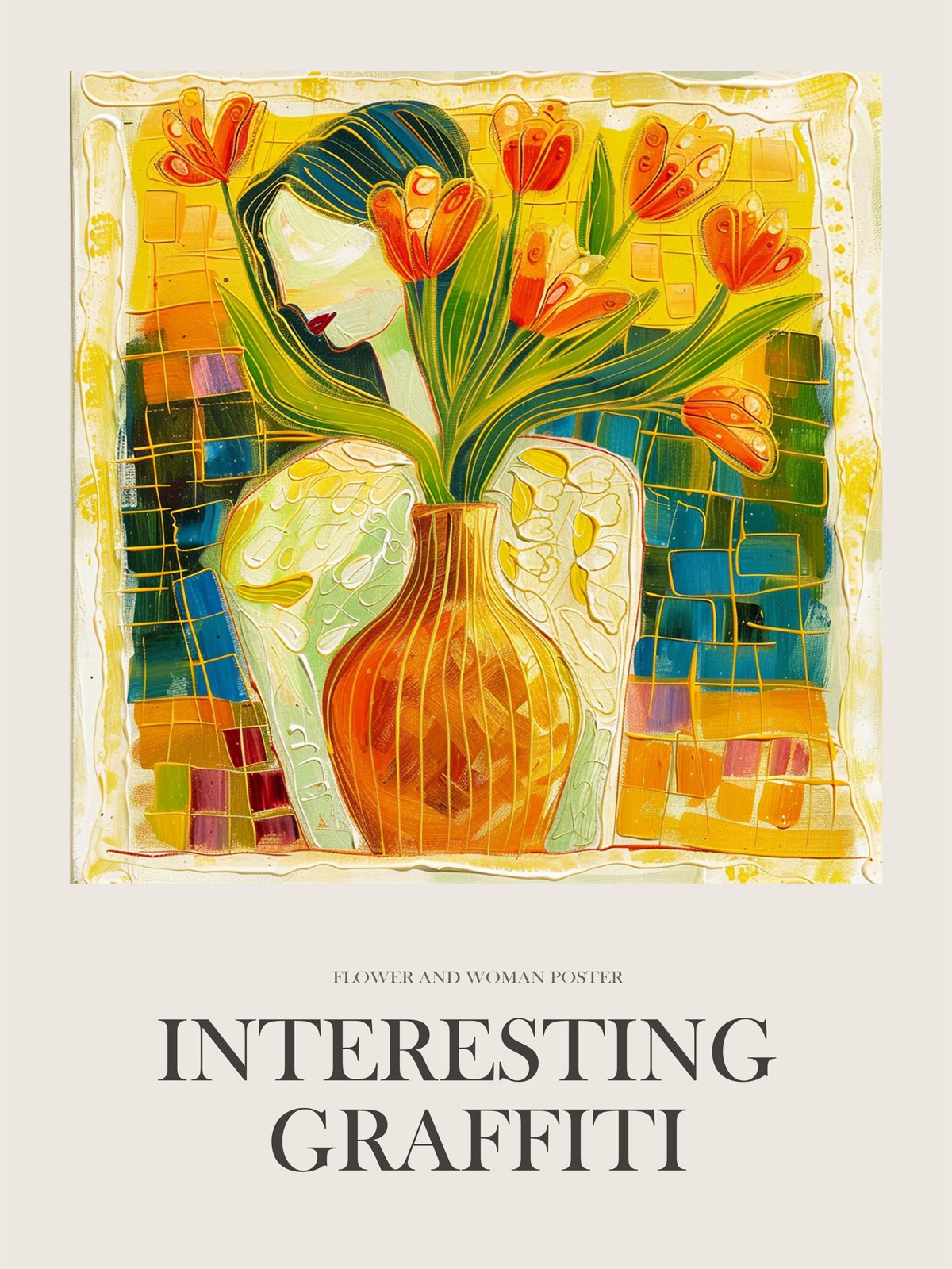 This pintura features a mujer and a bouquet of flowers in an abstracto style with brillante and vivo colors. The artwork is lleno of vitalidad and artístico flair, evoking a sentido of calidez and alegría, as if you can sienten the breath of primavera and the poder of vida.